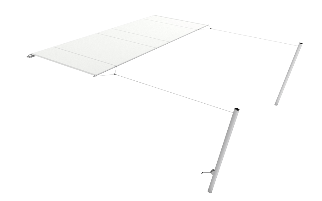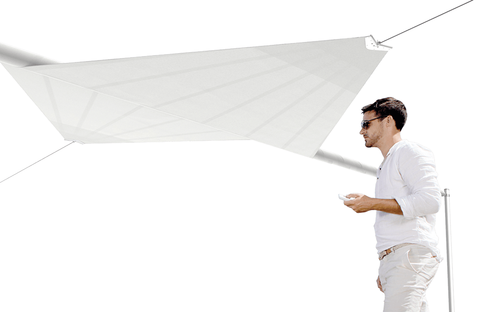 Das Segeltuch wird über eine motorisierte Welle mit einer Länge von bis zu 8 Metern aufgerollt und lässt sich bequem per Knopfdruck steuern. Dank der patentierten Segelaufhängung fährt das Segeltuch bis zu 7 Meter aus und erreicht so eine Beschattungsfläche von bis zu 56 m².