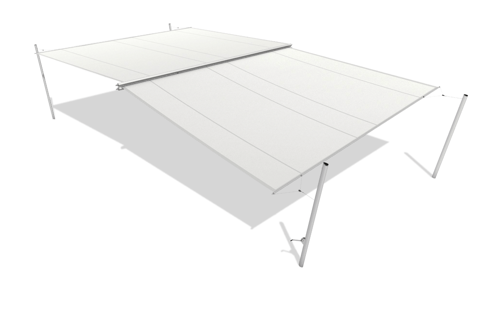 In der Praxis können die Wellen auch nebeneinander montiert werden. Dadurch lassen sich selbst sehr breite Flächen effektiv und regendicht beschatten – ideal für großzügige Terrassen, Außenbereiche oder offene Plätze.